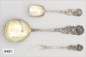 Lot: Rosenbesteck, 2 x Ag 800/000, ANTICO (kl.Schaufel u. Sahnelöffel), 1 x Ag 835/000, kl.Gabel,