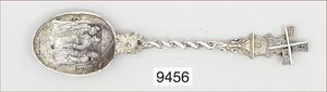 Löffel, Silber (geprüft), holländisches Motiv mit beweglicher Windmühle, 3 Frauen in Tracht, Schriftzug: "VODENDAM"