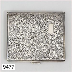 Zigarettenetui WMF, Neusilber, innen verg., auf beiden Seiten aufwendig graviert, 93 x 81 x 15,5 mm