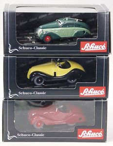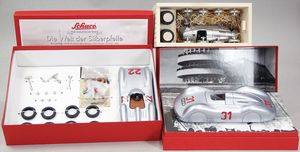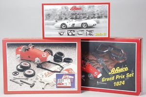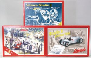 SCHUCO Konv. 3-tlg., Studio III, Bausatz, Die Welt der Silberpfeile, Mercedes Benz W 196, Stromlinie, Hans Hermann, Das Wunder von Reims 1954, Auto Union, New York, USA, Rennwagen, Studio II, Typ C, Bernd Rosemeyer, USA 1937, limitierte Auflagen, 1000 Stück, Studio VI, Rennsportlegenden, Auto Union, Stromlinie, Bernd Rosemeyer, auf der Awus 1937, alles neuwertig, Orig.-Kart.