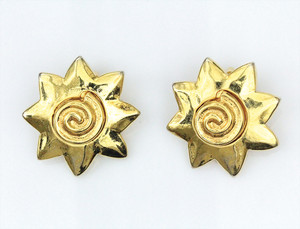 Goldfarbene Blütenclips von Coro (signiert). Plastische Ausführung. Mattes Metall mit „ausgefransten“, glänzenden Rändern. D = 34 mm