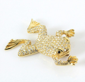 Goldfarbene Brosch unsigniert. Klarer Strassbesatz. Plastische Darstellung eines Tigers. Ähnlich wie TRIFARI, ca. 83,5 x 35,5 mm