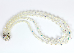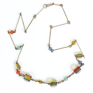 Glaskette, GABLONZ, Verschluß verg., weißes fac. Glas u. kupferfarb. schillernde Glaskugeln, L = 47 cm