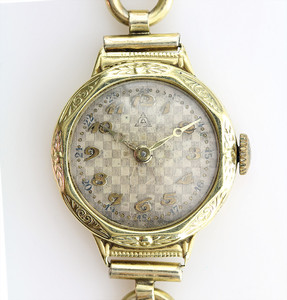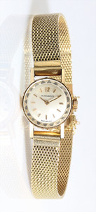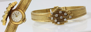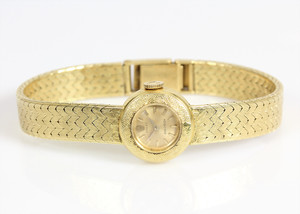 Damenarmbanduhr ALPIA, GG 585/000 (Gehäuse), röm.Zahlen, Handaufzug, Double Metallband mit Kastenschloß, L = 15,5 cm, Uhr läuft