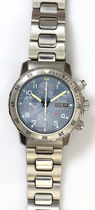 Herren-Taucherchronograph SINN Modell Arctis, Ref: 103.10016, Anfang 2000, Edelstahl incl. Edelstahlband mit Sicherheitsfaltschließe, Drücker u. Boden geschraubt, bei Fertigstell. Wasserd. 300m, schwarzes Z.Blatt, Automatik, Saphirglas, Lünette eins. rasted drehbar, Basiskal.Valjoux / ETA 7750, D = 41 mm, Uhr läuft (Aufzugsfeder/Krone defekt)