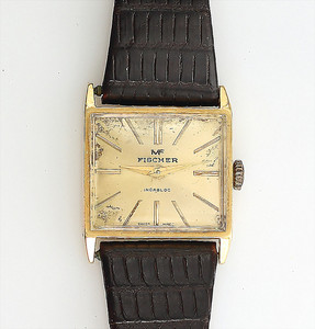 Damenarmbanduhr MF FISCHER, 40/50er Jahre, GG 750/000, Strichindex, Handaufzug, Lederband mit Dornschließe, Uhr läuft