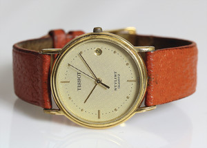 Herren-Armbanduhr TISSOT, Stahl/Gold, Zentralsekunde, Datum, Quarz, D = 31 mm, Ledrband mit Dornschließe, Uhr läuft
