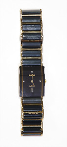 Herren Quarz Armbanduhr von 1996, RADO Dia Star "Jubile" 1800, schwarzes Ziffernblatt mit 4 Diamanten, Saphirglas, Boden Stahl gedrückt, Keramik, vergoldet, Gliederband mit Faltschließe, Uhr läuft