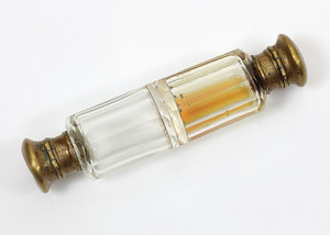 Doppel-Flacon, England, 2.Hälfte 19.Jhd., victorianisch, Messingmontur mit 2 Korken, Höhe ca.115.0 mm, D = 27,0 mm