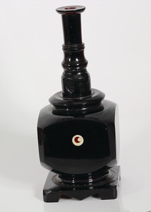 Flacon um 1920 wohl ENGLAND, rötlich undurchsichtiger Kunststoff (Stöpsel fehlt), L = 10,5 cm, Grundfläche, 4 x 4 cm
