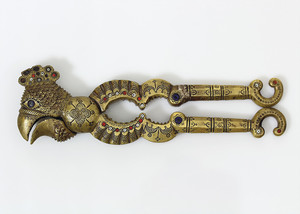 Nussknacker um 1920/30, Messing mit Glaseinlage, Nussknacker als stilisierter Vogel gearbeitet, L = 17 cm