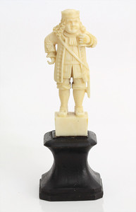 Statue um 1880/1900, PERKEO stehend auf einem Holzsockel, vollplastische Elfenbeinschnitzerei mit fehlenden Atributen, H = 100 mm (incl. Sockel)