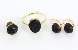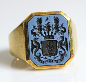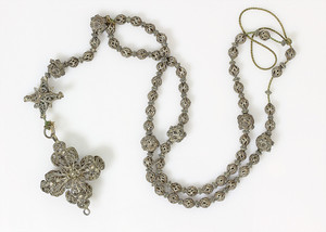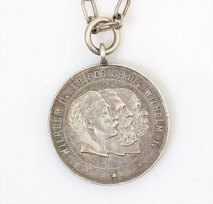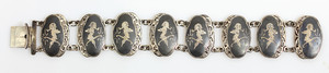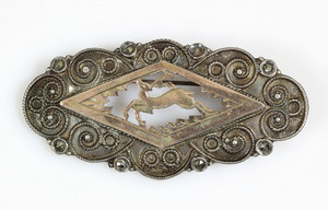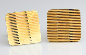 Eßbesteckt für 12 Personen, JUGENDSTIL um 1900, KREUZBANDMUSTER, LUTZ & WEIß Pforzheim: 12 Kaffelöffel L = 14,5 cm; Dessertbesteck: je 12 Gabeln L = 18,5 cm; 12 Messer L = 21,5 cm; je 12 Gabeln, L = 21,5 cm, 12 Messer 26 cm, 12 Löffel, L = 21,5 cm, 2 Fleischgaben, L = 19 cm, 2 Fleischgaben L = 20,5 cm, mittelgroßes Vorlegebesteck: Gabel u. Löffel L = 20,7-21,5 cm, Salatbesteck: Gabel u. Löffel, Vorderteile aus Horn ( 1 Zinken abgebrochen) L = 22,5 cm; 1 kl. Vorlegelöffel L = 19 cm; 1 gr. Vorlegelöffel, L = 22,5 cm, 1 Soßenlöffel, L = 18 cm; 1 Suppenschöpfkelle, L = 35 cm, 2 Kuchenheber,1 x L = 25 cm / 1 x L = 29 cm, Servierbesteck (bis auf Schöpfkelle u. 2 Fleischgabeln) Vorderteile Feuervergolde, sehr guter Erhaltungszustand ! total 5,2 kg