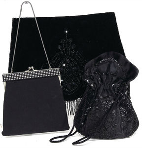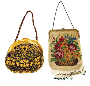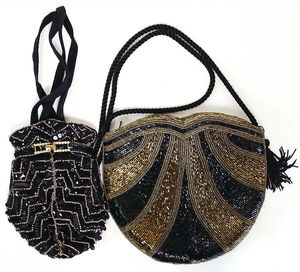 2 Damentaschen, ca. 1930, reichh. Perlen bestickt, schwarz- und goldfarben, ausgefallen, guter Zust.