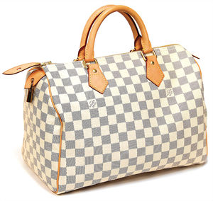 Damentasche Speedy 30, Damier Azur Canvas, mit Schloss und dazugehörenden Schlüsseln, Louis Vuitton-Zipper, B: 30 cm, H: mit Trageriemen 32 cm, große Fülltasche, 1 kleine Innentasche, mit Rechnung vom 18. Mai 2009, im Orig.-Staubbeutel, sowie Orig.-Papiertasche, neuw. Zust.