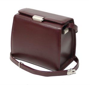 Damentasche, Leder, eckiges Modell, brombeerfarbig, B: 22 cm, H: 22, große Fülltasche, 1 Seitentasche mit Reißverschluss, matt silberne Beschläge, Innenfutter aus abwaschbarem brombeerfarbigem Kunststoff, mit langem größenverstellbarem Schultertrageriemen, passendes Portemonnaie, reichh. Platz für Kreditkarten, Scheine, sowie Münzgeld, ausgefallen, sehr schöner Zust.