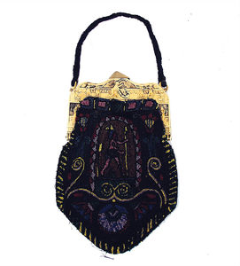 Damentasche, Stil 30er Jahre, mit reichh. Perlenbesatz, runde Form, B: 19 cm, H: 18 cm, neuw. Zust.