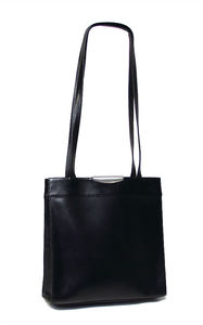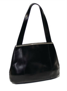 Damentasche, schwarzes Glattleder, 2 lederne Schulterriemen, B: 35 cm, L: mit Schulterriemen 52 cm, Taschenbügel mit silbernen Stangen, eingeprägt: „Lagerfeld“, innen 4 Magnetknöpfe zum Verschließen, Innenfutter aus schwarzem Kunststoff, große Fülltasche, 1 Seitentasche mit Reißverschluss und Lagerfeld Emblem, im Orig.-Staubbeutel, neuwertiger Zust.