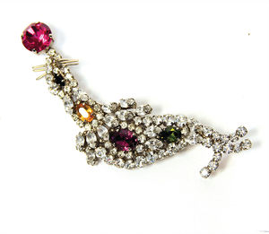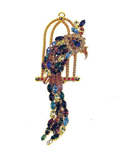 Brosche, Papagai, 12,5 cm, mit reichh. Strasssteinen, filigran verarbeitet, ausgefallen