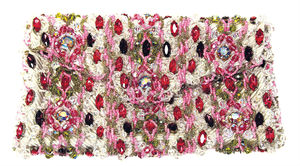 Handtasche, Clutch, mit reichh. Strasssteinen und Perlen überzogen, Innenseite aus Seide, große Fülltasche, 1 kl. Seitentasche, B: 23 cm, H: 14 cm, guter Zust.