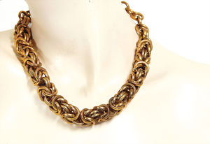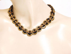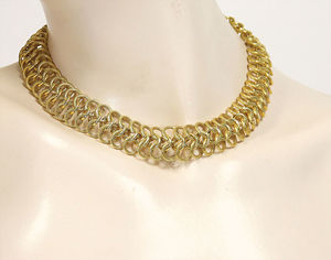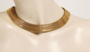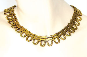 Modeschmuck aus Idar Oberstein, 30er Jahre, Messing, massiv verarbeitete Damenkette, eng anliegend, ausgefallen, B: 2 cm, sehr guter Zust.