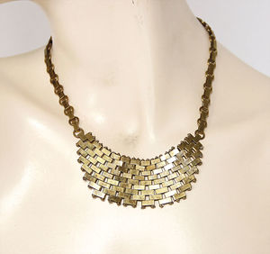 Modeschmuck aus Idar Oberstein, 30er Jahre, Messing, eng anliegende Mauerwerk-Design-Kette, ausgefallen, guter Zust.