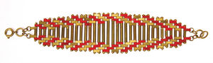 Modeschmuck aus Idar Oberstein, 30er Jahre, Messing, Armband, teilw. verarbeitetes Mauerwerk-Design, Messing teilw. rot handbemalt, guter Zust.