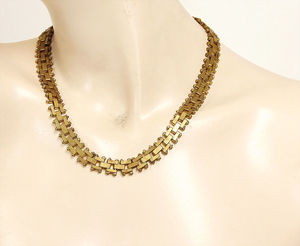 Modeschmuck aus Idar Oberstein, 30er Jahre, Messing, eng anliegende Mauerwerk-Design-Kette, guter Zust.