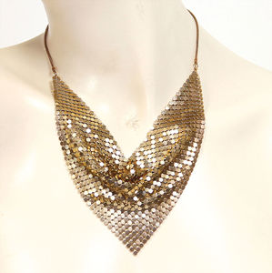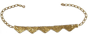 Modeschmuck aus Idar Oberstein, 30er Jahre, Messing, Mesh-Halskette, goldfarbenes dreieckiges Metallgitter, Verschluss fehlt, altersbed. leichte Abnutzungsstellen