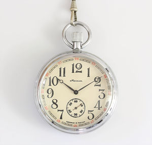 Herrentaschenuhr, RUSSLAND, Metall, arab.Index, gebläute Zeiger, Brequetspirale, D = 54 mm, Uhrenkette, Uhr läuft