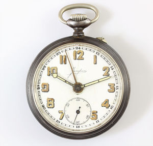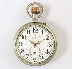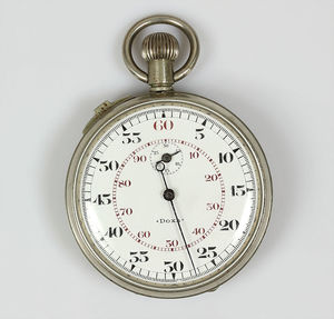Taschenuhren-Stopper, DOXA, E.Z. Blatt mit schwarzen u.roten Zahlen, Stoppfunktion über Schieber auf 11 Uhr, Rückstellung über Krone, D = 50,5 mm, funktionstüchtig