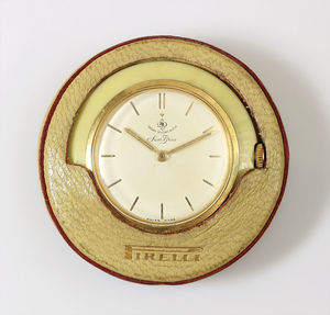 Damentaschenuhr, SAINT BLAISE 20 Dollar WATCH, Werbegeschenk von PIRELLI mit orig. Lederetuit, zitronenfarbenes Kunststoffgehäuse, Handaufzug, Strichindex, Uhr läuft, D = 49,5 mm (Etui)