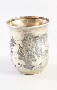 Becher 30/40er Jahre, Silber 835/000, Handgravur: Mädchen in Tracht mit Picknikkorb, H = 68 mm, total 57,3 g