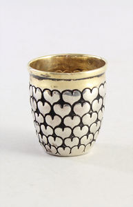 Herzbecher um 1930 im Stil des 17. Jhd., Silber 800/000 AMD (Manns Adam & Söhne), handgetrieben, H = 47 mm, D = 42 mm, total 47 g