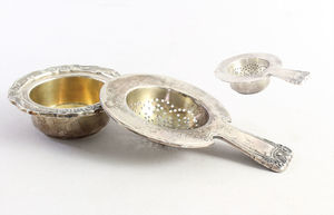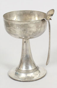 Pokal um 1920 mit Halterung für kleinen Löffel, plated, gepunzt: EP WF, D = 88,5 mm, H = 130 mm; kl. Löffel Schwedisch 2.Hälfte 19. Jhd. , Silber, gepunzt: AA D6, (nicht orig. dazugehörig), L = 118 mm