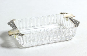 kleine Konfekt-Schale mit ART-DECO Einfluß um 1920/30, Silber 800/000, gepunzt MT, kleine Elfenbeinfüße (leicht verzogen), 141,5 x 118,5 x 44 mm