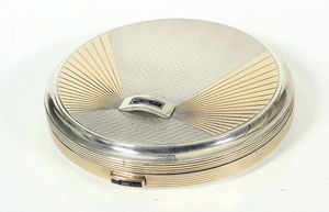 Puderdose um 1940/50, Silber 925/000, gepunzt EGB, Deckel und Seiten teilvergoldet, je 3 synth. Saphire im Drücker und Deckel, hochwertig verarbeitet, D = 77,5 mm H = 14,8 mm, total 94,6 g