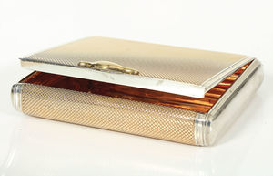Zigarrettenetui um 1940/50, Silber 925/000t, umlaufend teilvergoldet, innen vergoldet, weiche schmeichelnde Form, hochwertig verarbeitet, D = 77,5 mm H = 14,8 mm, total 178,7 g