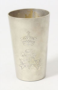 Becher vor 1900, Silber 800/000, gepunzt: WTB, Gravur: Krone u. Monogramm "RJC" 29, RV: M. Lindeck 19.11.99, D = 57,5 mm, H = 92,5 mm, 77,9 g