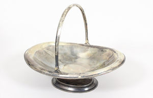 Henkel-Schale RUßLAND 1887, gepunzt: J.A. 84 Zolotniki, Henkel beweglich (Scharnierbewegung), Zustand dem Alter entsprechend (kleine Dellen in der Schale), 19,8 x 15,5 cm, H = 20,5 cm (mit Henkel), total ca. 430 g
