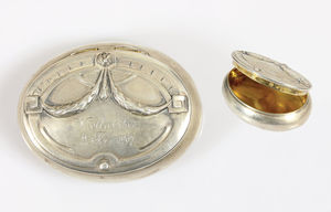 kleine Pillendose, EMIL PUIFORCAT S.A. Frankreich um 1880, Silber, Deckel (über Scharnier zu Öffnen) mit feiner Gravur, innen feuervergoldet, Maße: 69 x 37 x 12,5 mm, eine der bedeutensten Silberschmiede Frankreichs, sie fertigen für Königshäuser und Luxus-Hotels, oder andere….!