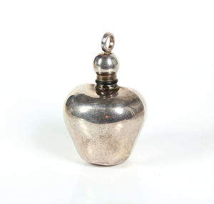 Parfumflacon 1920/30er Jahre, Silber (nicht gepunzt), Deckel verschraubt mit Pipette und Öse zum Anhängen, H = 45 mm