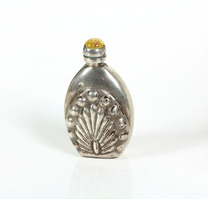 Parfumflacon 1920/30er Jahre, Silber 925/000, Deckel verschraubt mit Pipette und Bernstein als Abschluss, H = 43 mm