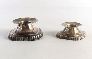 1 Paar Kerzenständer 1960/70, WILKENS, Silber 835/000, Modell 7897 III (69,5 x 69,5 mm) & 7897 II ( 86 x 86 mm), Füße Kitt gefüllt