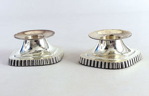 1 Paar Kerzenständer 1960/70, WILKENS, Silber 835/000, Modell 7897 II ( 86 x 86 mm), Füße Kitt gefüllt
