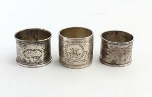 Lot: Serviettenringe 3 Stück, JUGENDSTIL um 1900, Silber 800/000 teilweise mit Monogramm / Namensgravur, total 85 g