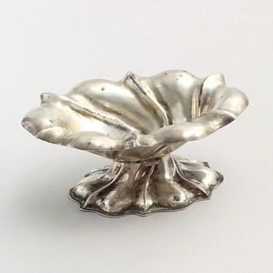kleines Gewürzschälchen um 1910, Silber 800/000, Punze: Auerhan, innen feuervergoldet, kl. 800/000 original Löffel