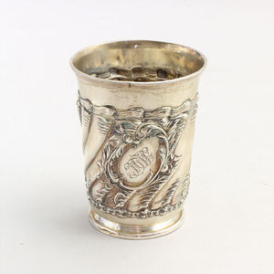 Becher um 1910, KOCH & BERGFELD 552, Silber 800/000, fein ziseliert, dezentes Monogramm, kl. Fuß, H = 8,5 cm