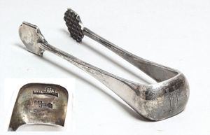 Zuckerzange, MOSKAU dat. 1877, 84 Zlotnik, Beschaumeister Moskau: Chlebnikow, Iwan Petrowitsch ( Hoflieferant, bedeutender Silberschmied), schwer gearbeitete Zuckerzange mit Waffelmuster, L = 12,5 cm, total 51 g