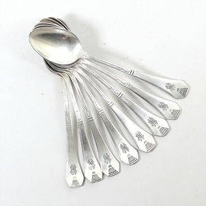 8 Kaffeelöffel, später JUGENDSTIL aus den 20er Jahren, WELLNER, 90 Auflage vers., schön integriertes Manogramm: H H , L = 14 cm, schwer gearbeitet